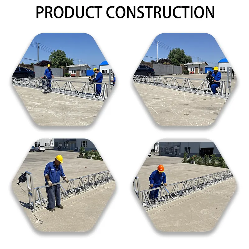 A máquina de truss de alumínio de alumínio de concreto de 18m está equipada com uma alça anti-deslizamento, fornecendo uma aderência confortável que é à prova de choque e anti-deslizamento. As engrenagens de transmissão são propensas a agitar e devem ser operadas com uma mão.