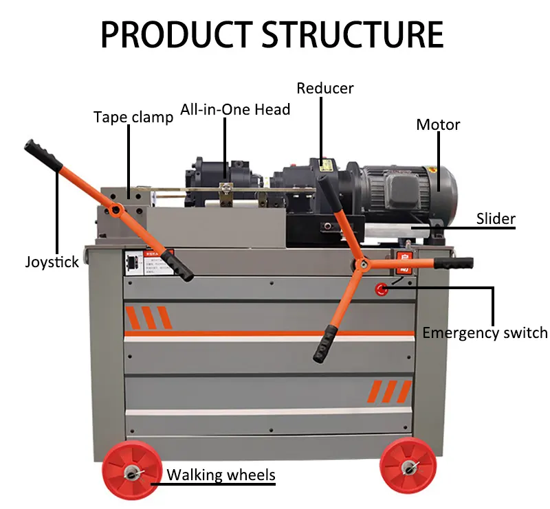 Alguns modelos também estão equipados com um sistema de controle inteligente, que pode ajustar automaticamente a velocidade e a taxa de alimentação e possui uma função de alarme de falha, melhorando significativamente a segurança e a eficiência da construção e do trabalho. A máquina rolante de roscas de vergalhão de 4.5kW é um equipamento ideal para operações de conexão de barra de aço em projetos de construção modernos.