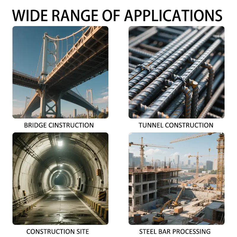 A máquina de rolagem de rosca de vergalhão de 4,5kW é um equipamento -chave para a conexão mecânica de barras de aço na construção moderna. É amplamente utilizado em vários projetos de estrutura de concreto armado. Em projetos em larga escala, como arranha-céus, pontes e túneis, ele pode concluir com eficiência o processamento de fios de final de barras de aço de vigas e colunas, bem como barras de aço de parede de cisalhamento, alcançando conexão mecânica de alta resistência. Em fábricas de componentes pré-fabricados, ele pode processar em lote as barras de aço conectadas à manga necessárias para edifícios pré-fabricados. E também é aplicável a projetos especiais com requisitos estritos para a qualidade da conexão da barra de aço, como galerias de tubos do metrô e projetos de energia nuclear.